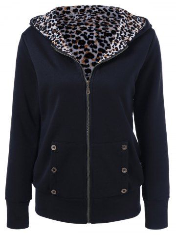 Sudadera Tallas Extra Leopardo Cremallera con Capucha - Negro - Negro