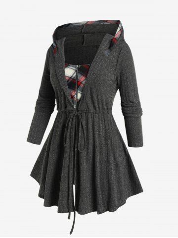 Abrigo de Túnica Talla Extra a Cuadros con Capucha y Cremallera - Gris - Gris
