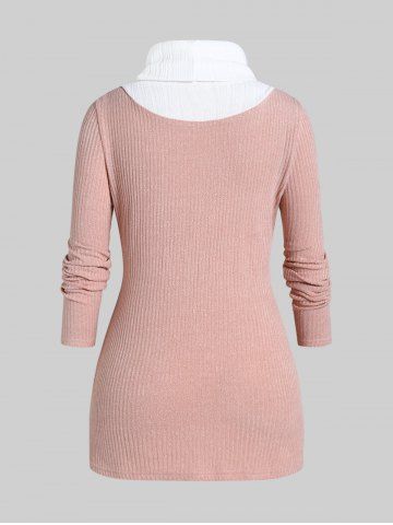 Chaqueta Talla Extra Tejida Cuello Tortuga Color Bloque - Rosa Claro - Rosa Luz
