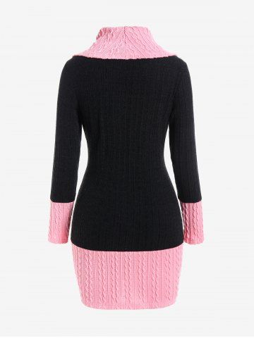 Plus Size Cowl Neck Cable Knit Two Tone Bodycon Mini Dress with Buttons