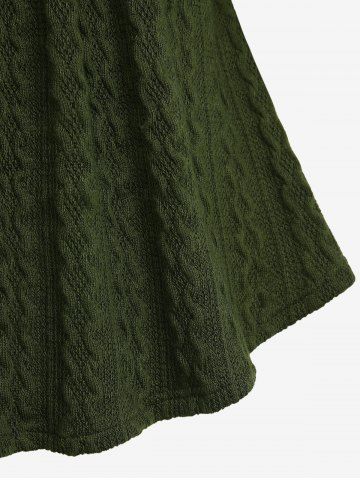 Plus Size Rhinestone Lace Trim Ruffles Belt Cable Knit Ribbed Textured Sweater - Verde Oscuro - 4x | Us 26-28