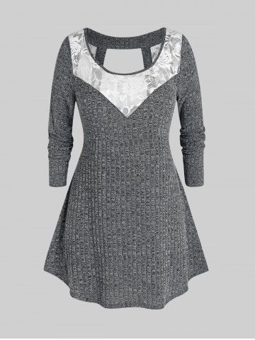 Suéteres & Rebecas > Tamaño más Marled encaje Panel géneros de punto
