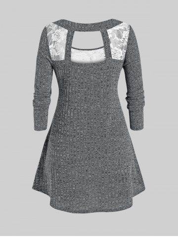 Tamaño más Marled encaje Panel géneros de punto - Gris Carbón - 4x