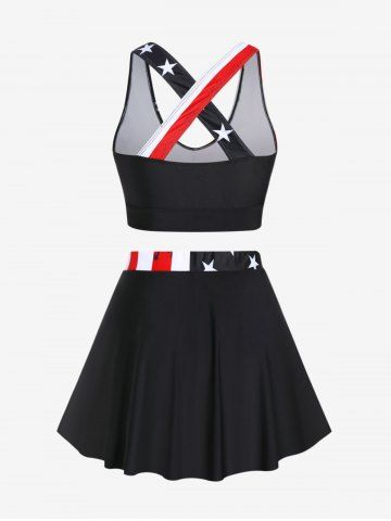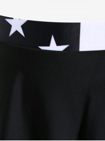 Bikini con Estampado de Bandera Patriótico de Estados Unidos con Espalda Abierta - Negro - Negro