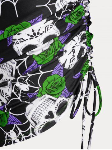 Tankinis > Plus Size & Curve Skull Rose Print Crossover Three Piece Bikini Swimsuit