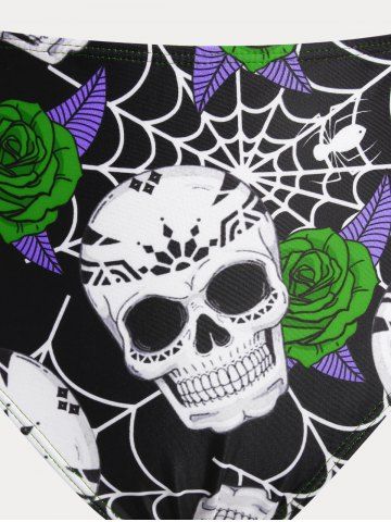 Tankinis > Plus Size & Curve Skull Rose Print Crossover Three Piece Bikini Swimsuit