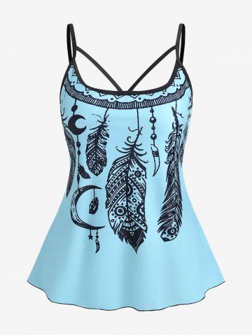 L*****e5Plus Size Dreamcatcher Print Modest Tankini SwimsuitColor: LIGHT GREEN Size: 1XAbsolutely love the way this looks on me I don't normally like my swimsuits but I love this one It stays down doesn't float up to your boobs I've worn it in the ocean and a pool