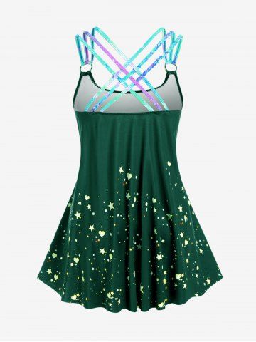 Plus Size Lip Printed Padded Boyleg Strappy Tankini Swimsuit - Verde - Verde