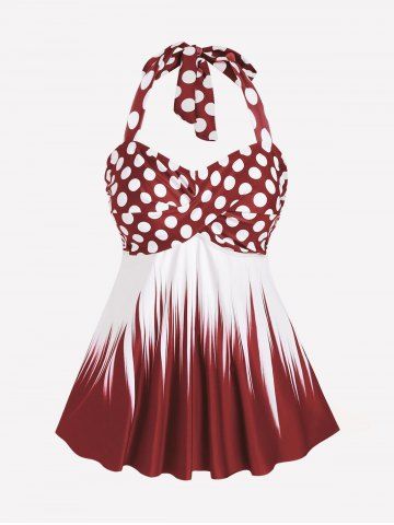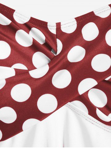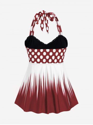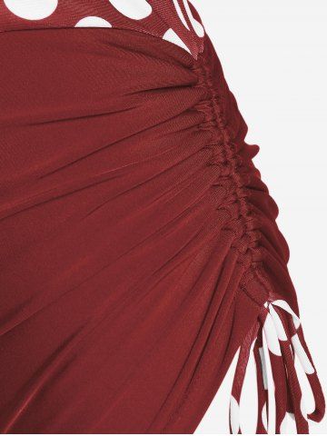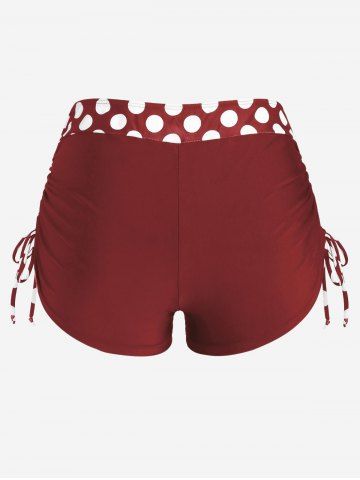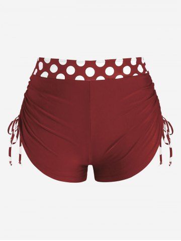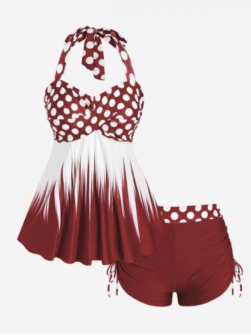 Plus Size Polka Dot Halter Twist Cinched Ruched Boyshorts Tankini Swimsuit - Color Rojo Oscuro - 3x | Us 22-24