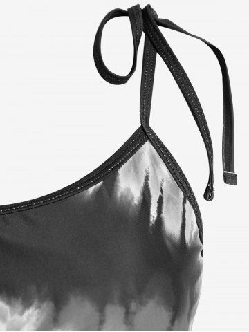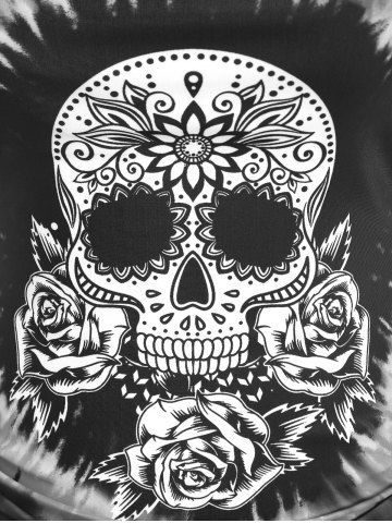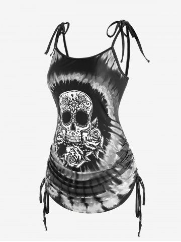 Plus Size Skull Rose Tie Dye Print Cinched Ruched Tie Boyshorts Tankini Swimsuit - Gris Oscuro - Gris Oscuro