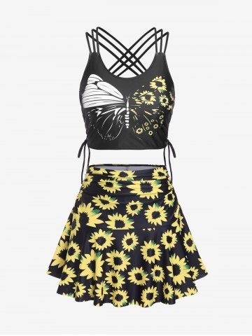 C*****l5Plus Size Sunflower Butterfly Cinched Ruched Boyleg Tankini SwimsuitColor: LIGHT BLUE Size: 2X | US 18-20Beautiful color and fits perfectly