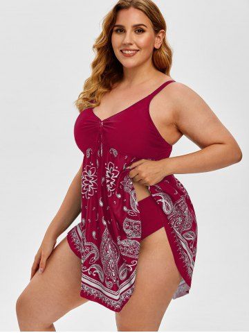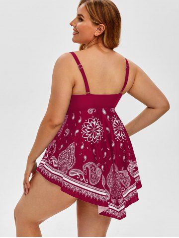Tankini de Pañuelo Acolchado con Estampado de Paisley - Color Rojo Oscuro - 1x
