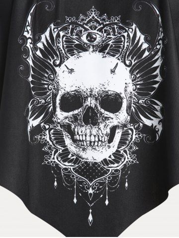 Tankini de Superposición con Estampado de Cráneo de Talla Extra - Negro - Negro