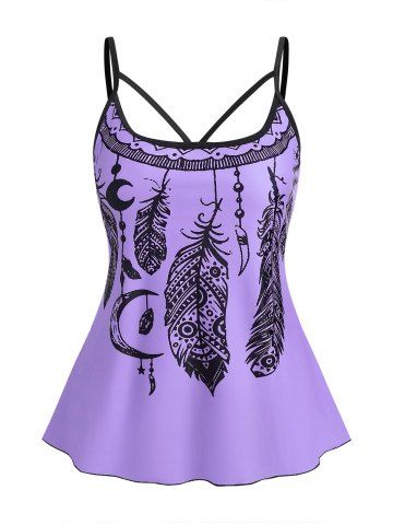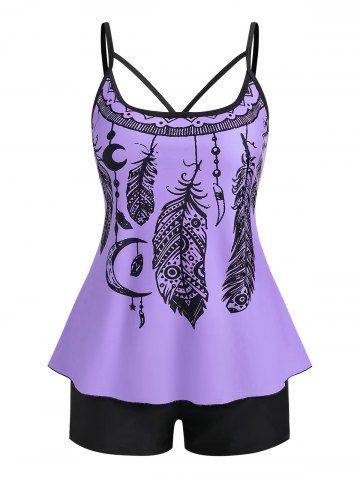 Tankini de Talla Extra con Estampado de Dreamcatcher - Púrpura - Púrpura