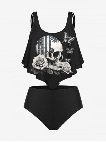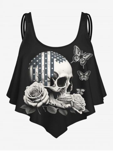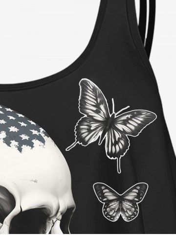 L*****i4Gothic 3D Skull Butterfly Rose American Flag Print Strap Tankini TopColor: BLACK Size: 1Xproduit au top très agréable à porter nhâte de le mettre cette été