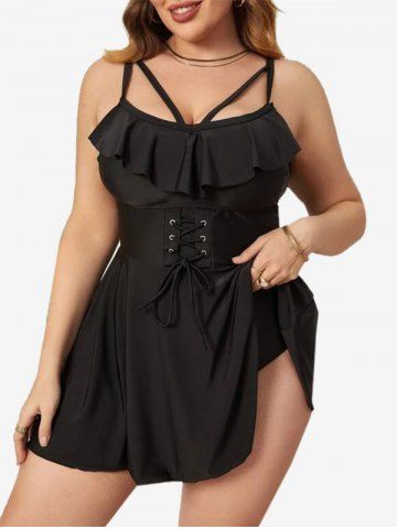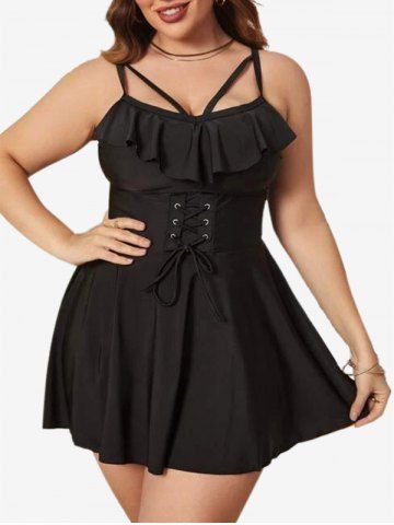 T*****e5Plus Size Lace-up Ruffle Strappy Tankini SwimsuitColor: BLACK Size: 2X | US 18-20Love it, fits great and flattering on. Bust size is 47 1/2 or H or I 38. So I remove the padding otherwise great!