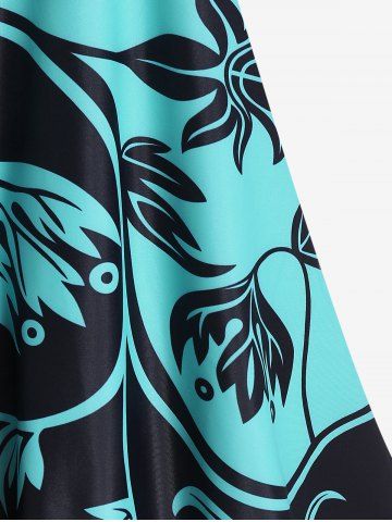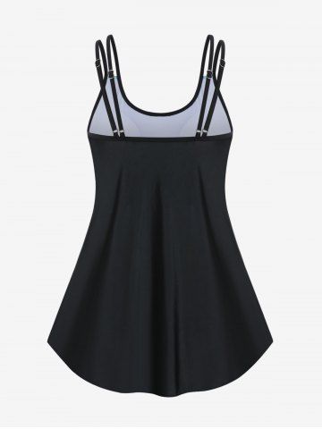 Tankini de Talla Extra con Estampado de Flores de Color Bloque - Negro - Negro