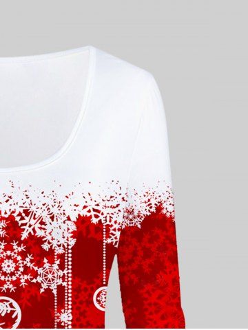 l*****e5Plus Size Christmas Snowflake Printed Colorblock Long Sleeves TeeColor: RED Size: 1X | US 14-16I bought this to wear at Christmas and got a lot of compliments on it. It’s very comfortable it fit well and just super cute. I love that it was stretchy and the pattern was adorable.
