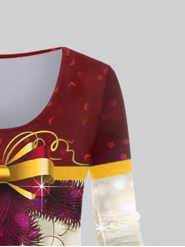 Tops > Camiseta de Talla Extra con Estampado de Bola de Bowknot de Navidad
