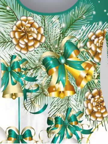 Plus Size Christmas Tree Bell Ball Print Long Sleeve Tee