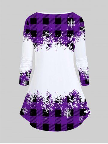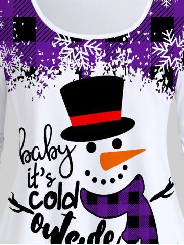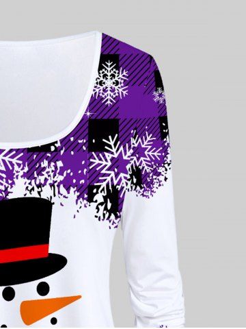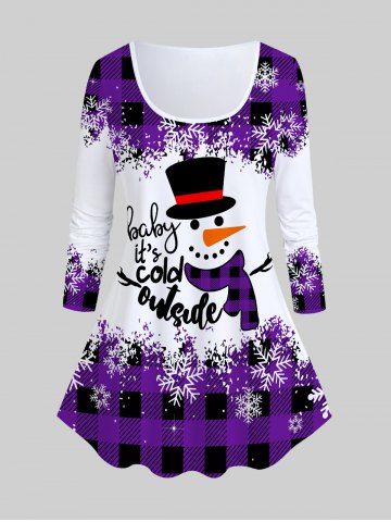 Tops > Camiseta Navidadeña a Cuadros Estampado Muñeco de Nieve Tamaño Plus