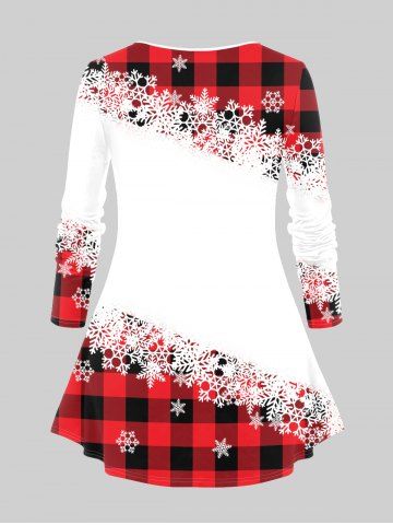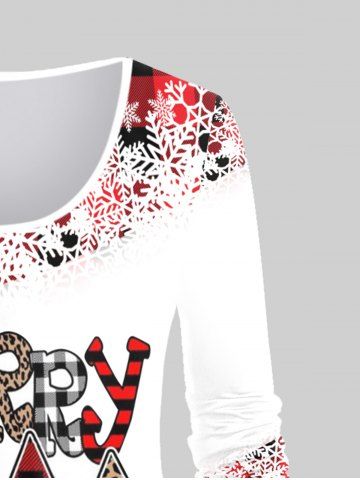 Plus Size Christmas Snowflake Checked Tree Print T-shirt