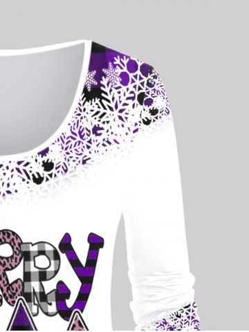 Plus Size Christmas Snowflake Checked Tree Print T-shirt