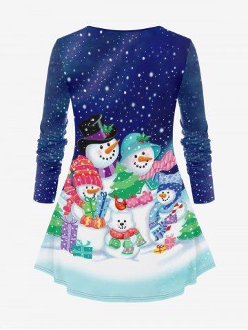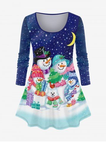 Plus Size Christmas Snowman Print T-shirt