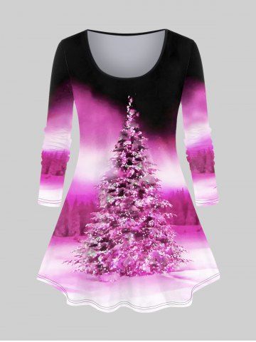 Tops > Camiseta Ombre de Talla Grande con Estampado de Arbol de Navidad