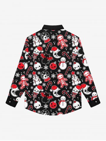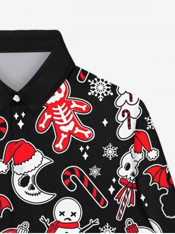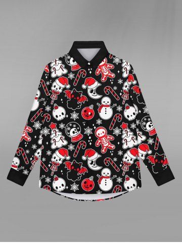 Gothic Skull Bat Cat Snowflake Snowman Moon Skeleton Print Christmas Buttons Shirt For Men - Negro - Negro