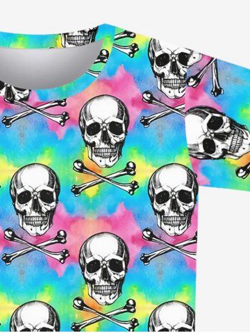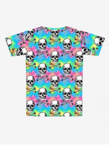 Gothic Skulls Bone Tie Dye Colorblock Print Short Sleeves T-shirt For Men - Multicolor-a - 8xl