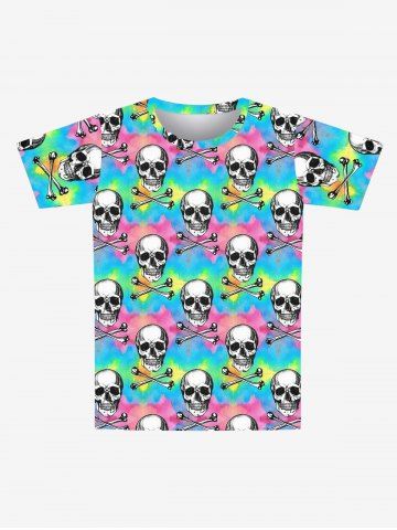 Tops > Gothic Skulls Bone Tie Dye Colorblock Print Short Sleeves T-shirt For Men