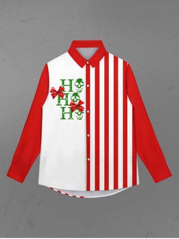 Tops > Gothic Striped Skull Bowknot Letters Printed Buttons Shirt For Men