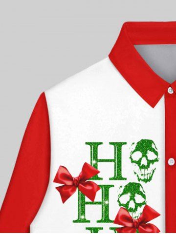 Gothic Striped Skull Bowknot Letters Printed Buttons Shirt For Men - Multicolor-a - L