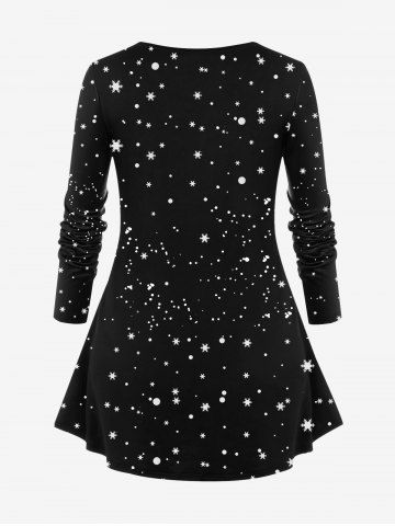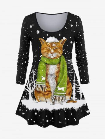Plus Size Christmas Snowflake Tree Scarf Cat Print T-shirt - Negro - Negro