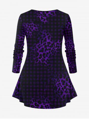 Plus Size Christmas Snowman Snowflake Plaid Leopard Printed Long Sleeve T-shirt - Concordia - 2x