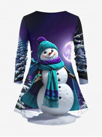 Plus Size Christmas Tree Snow Snowman Glitter Moon Ombre Galaxy Print Long Sleeves T-shirt - Multicolor-a - 6x
