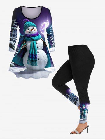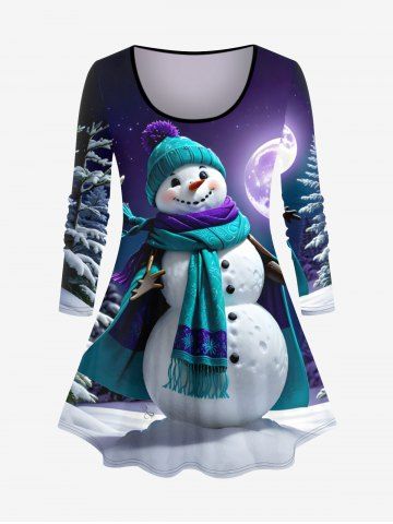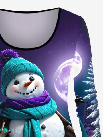 Tops > Plus Size Christmas Tree Snow Snowman Glitter Moon Ombre Galaxy Print Long Sleeves T-shirt