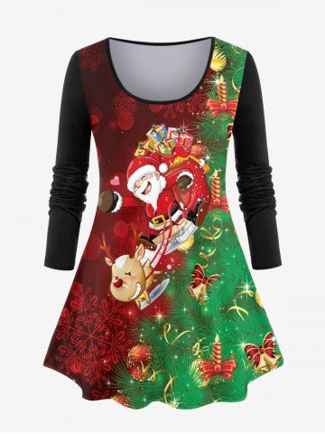 T*****h5Plus Size Christmas Elk Santa Claus Printed Long Sleeves TeeColor: DEEP RED Size: 3X | US 22-24I love the whimsical design on this very festive holiday blouse! I like the long sleeves that are perfect for the colder weather and the dark colors are flattering to my fair skin tone. It fits true to size & looks just like the picture!