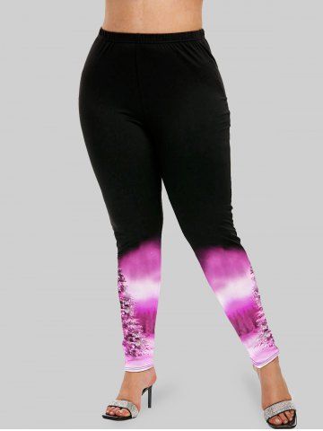 Christmas Tree Print Ombre Long Sleeve T-shirt and Leggings Plus Size Outfit