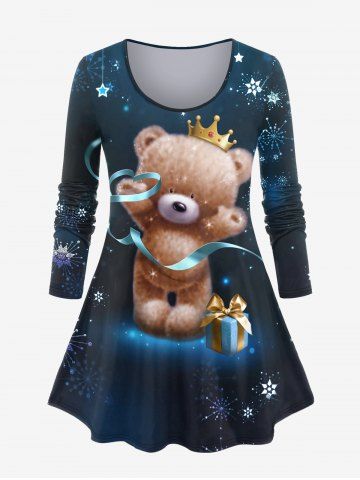 t*****c5Plus Size Christmas Bear Snowflake Printed Long Sleeves TeeColor: DEEP BLUE Size: 5X | US 30-32This teddy bear shirt is absolutely adoreable. I love it. it is comfortable had great colors and the bear is so cute. I love how the clothes are made and are stretchy.