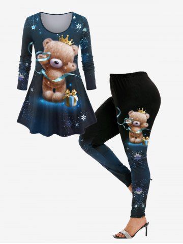 A*****a5Christmas Bear Snowflake Printed Tee and Leggings Plus Size Matching SetColor: DEEP BLUEBeautiful fabric. Very soft and comfortable. Fits perfectly and I love it.