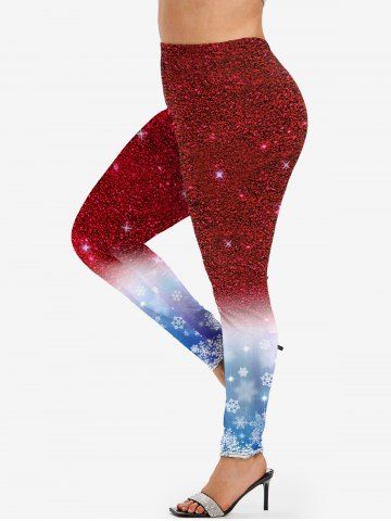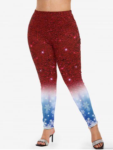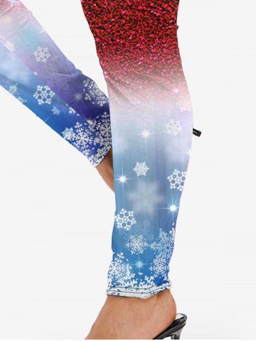 Plus Size Christmas Snowflake Cat Printed Ombre Tee and 3D Sparkles Snowflake Printed Leggings Outfits