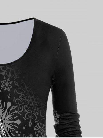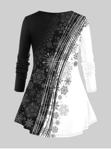 D*****s5Plus Size Christmas Snowflake Print Two Tone T-shirtColor: BLACK Size: L | US 12Love this shirt. Very comfortable, looks great with black jeans, and boots.
