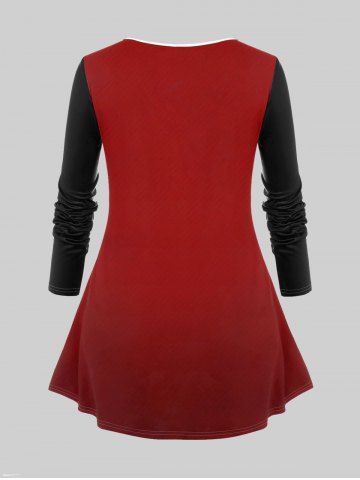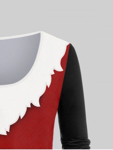 Outfit de Camiseta de Talla Extra de Navidad 3D Impreso de Manga Larga - Color Rojo Oscuro
