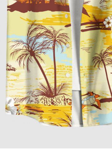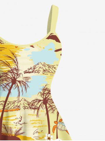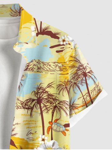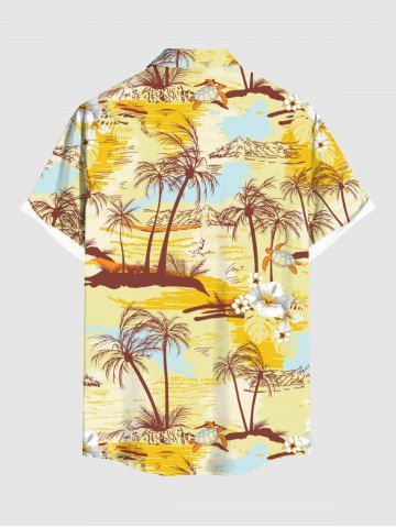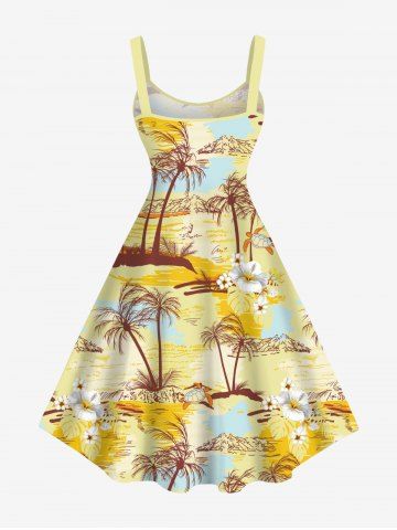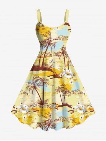 Coconut Tree Flowers Seascape Print Plus Size Matching Hawaii Beach Outfit For Couples - Amarillo - Amarillo