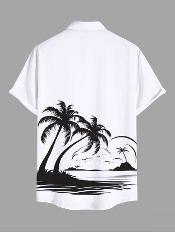 Coconut Tree Sea Waves Print Plus Size Matching Hawaii Beach Outfit For Couples - Blanco - Blanco