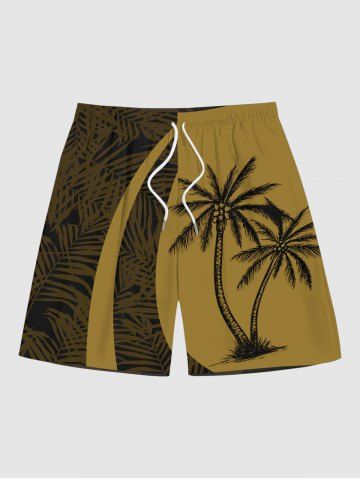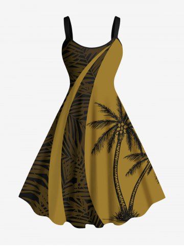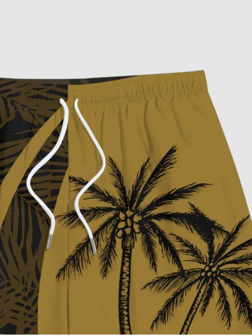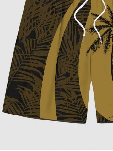 Coconut Tree Tropical Leaf Print Plus Size Matching Hawaii Beach Outfit For Couples - Amarillo Profundo