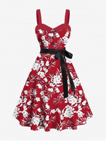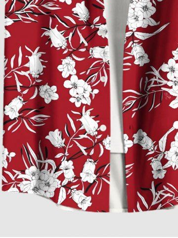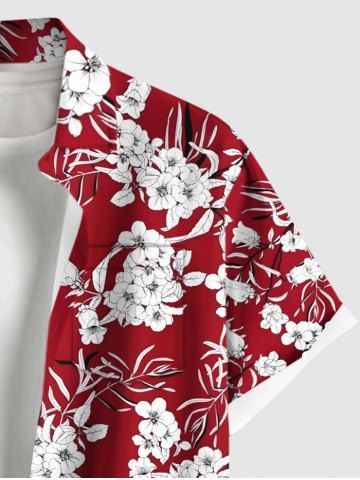 Flowers Leaf Print Plus Size Matching Hawaii Beach Outfit For Couples - Rojo - Rojo