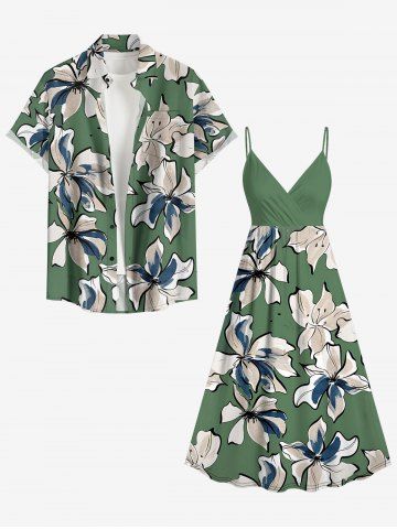 Flowers Watercolor Print Plus Size Matching Hawaii Beach Outfit For Couples - Verde Claro - Verde Claro